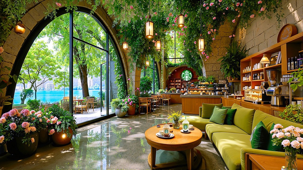 【スタバ bgm】4月の湖が見えるスタバカフェ☕新緑に包まれる夏めく優しいピアノジャズ | 作業用bgm 広告なし | 新しい週の始まりに心を整えるフレッシュジャズ。 starbucks jazz