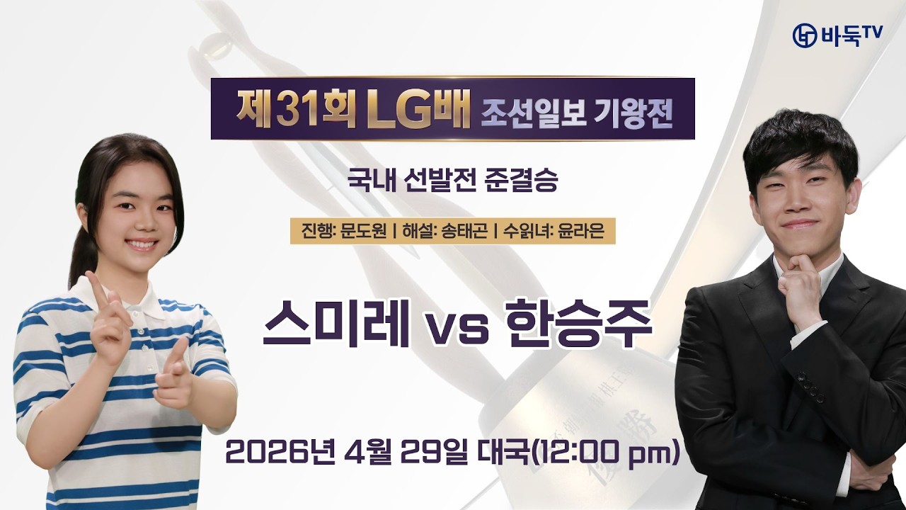 🔴Live Now: 스미레 vs 한승주 | 제31회 LG배 조선일보 기왕전 국내선발전 준결승