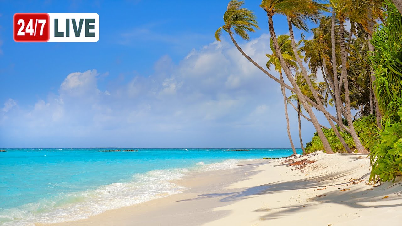 Immerse yourself in The Most Relaxing Ocean 4K (LIVE 24/7) – a sunny Maldivian beach with soft white sand, swaying palm trees and crystal-clear turquoise water. This live stream brings you...