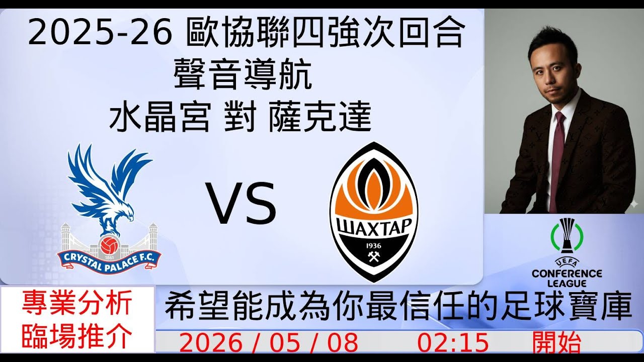 2025/26 歐協聯四強次回合聲音導航 - 水晶宮 對 薩克達|十大精闢數據|賽前冷門推介|精彩評述