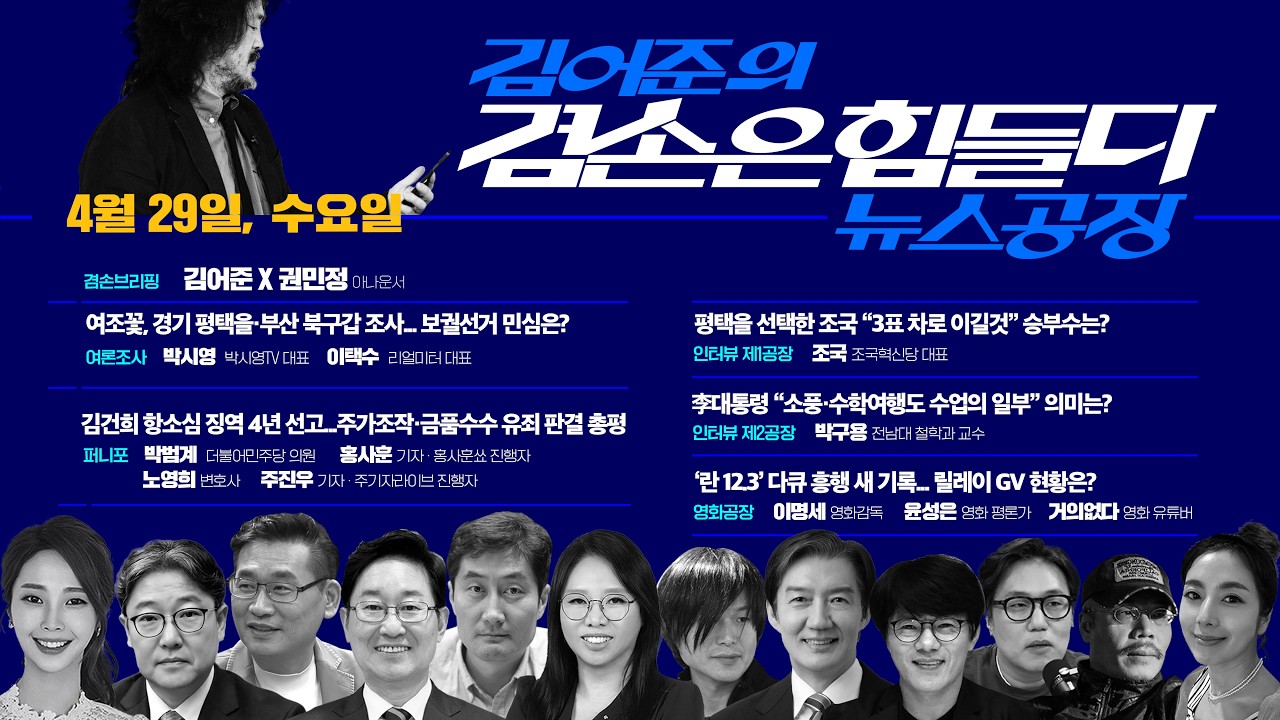 김어준의 겸손은힘들다 뉴스공장 2026년 4월 29일 수요일 [여론조사, 홍사훈X노영희X주진우X박범계, 조국, 박구용, 영화공장]