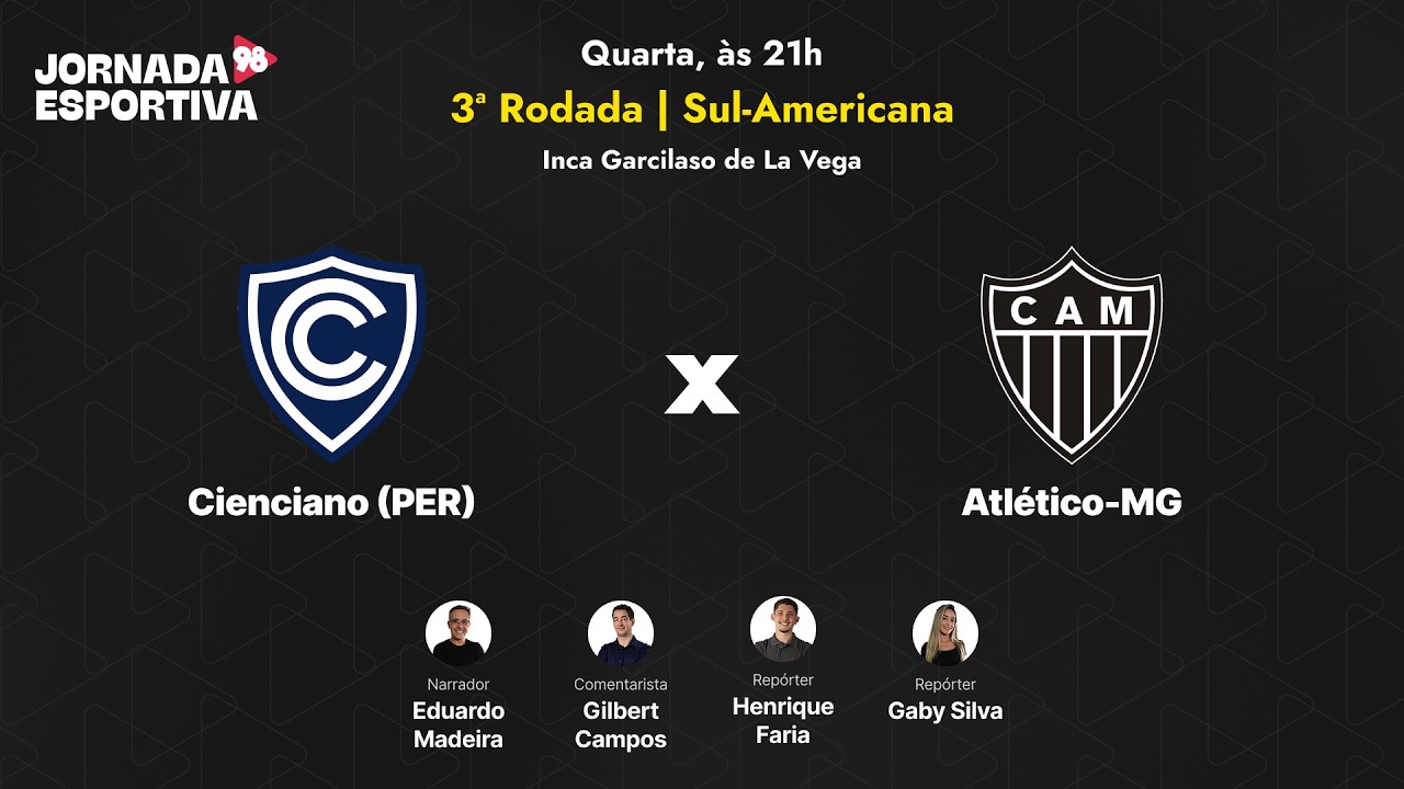 Hoje é dia de Jornada Esportiva na 98! Nesta quarta-feira (29/04), Cienciano e Atlético se enfrentam no Inca Garcilao de La Vega, pela 3ª rodada da fase de grupos da Copa Sulamericana. A...