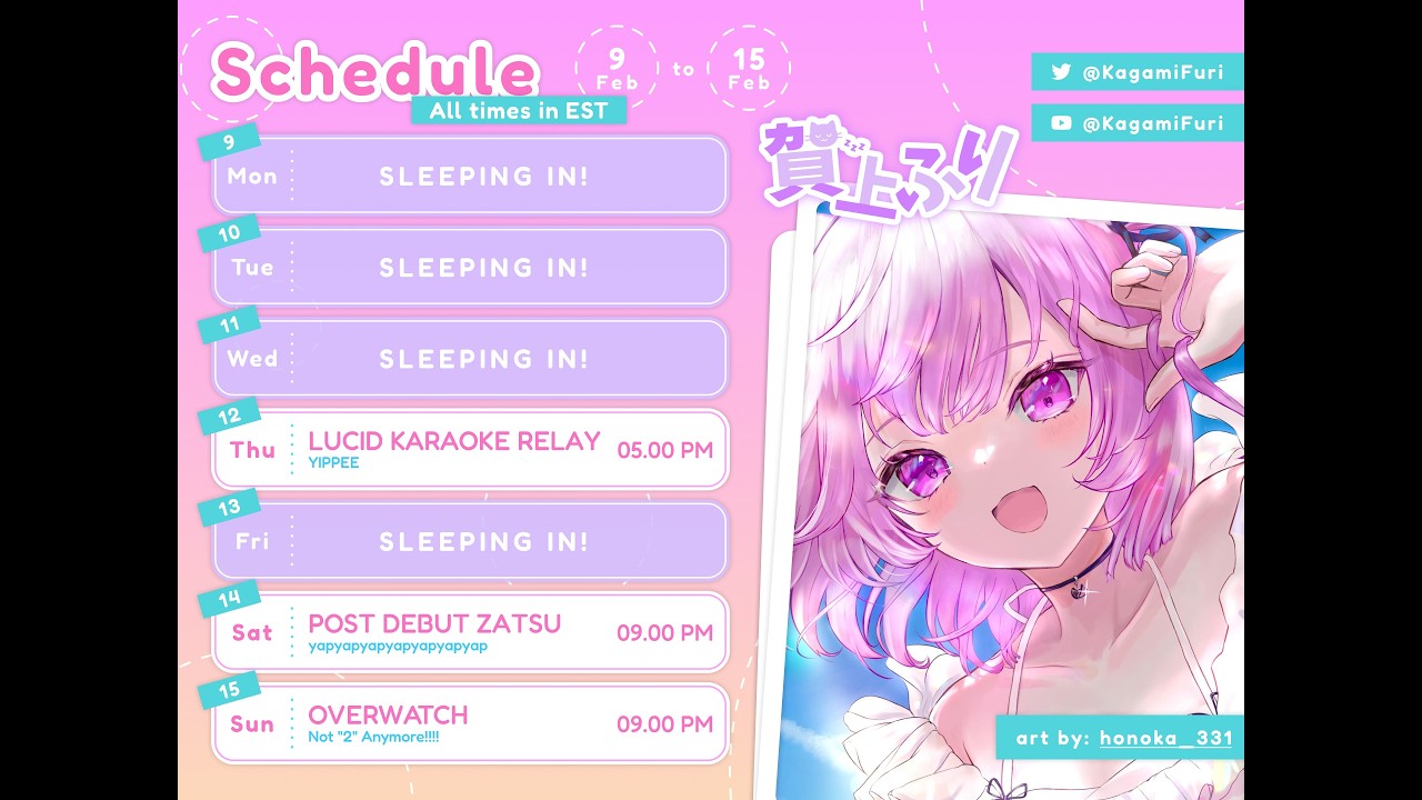 STREAM SCHEDULE (UPDATED WEEKLY) — Kagami Furi【lucid ☁️】